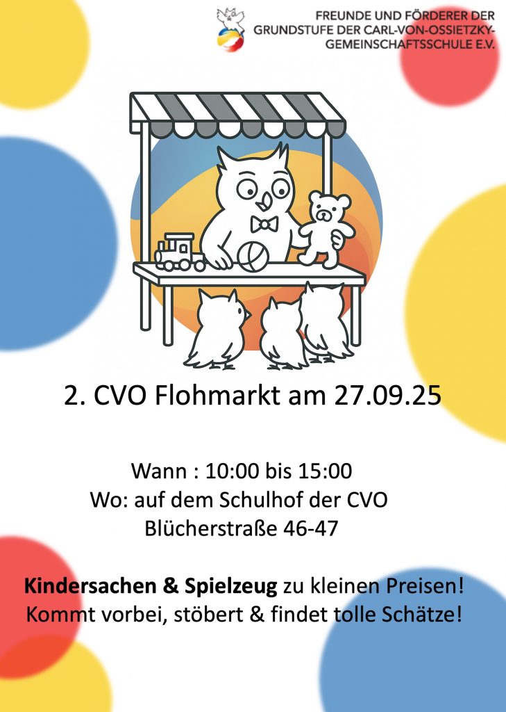 Am 27.09.2025 findet unser zweiter CvO-Flohmarkt auf unserem Schulhof statt. Der gesamte Erlös kommt unserem Förderverein der Grundstufe zu Gute. Jeder ist herzlich willkommen!